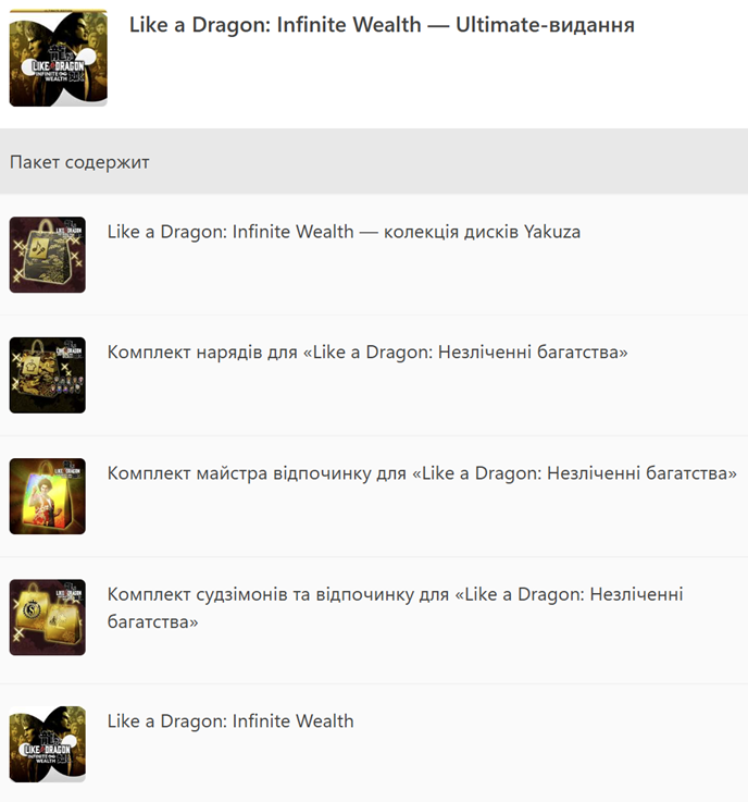 • Коллекция дисков Yakuza